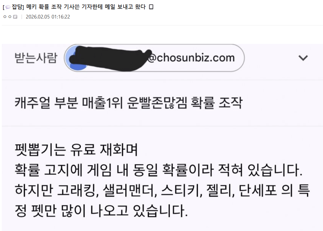 "돈 써도 특정 펫만" 111% "운빨존많겜" 확률 조작 논란