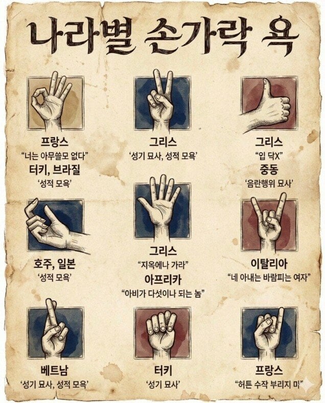 나라별 손가락 욕
