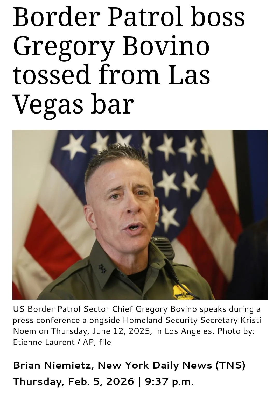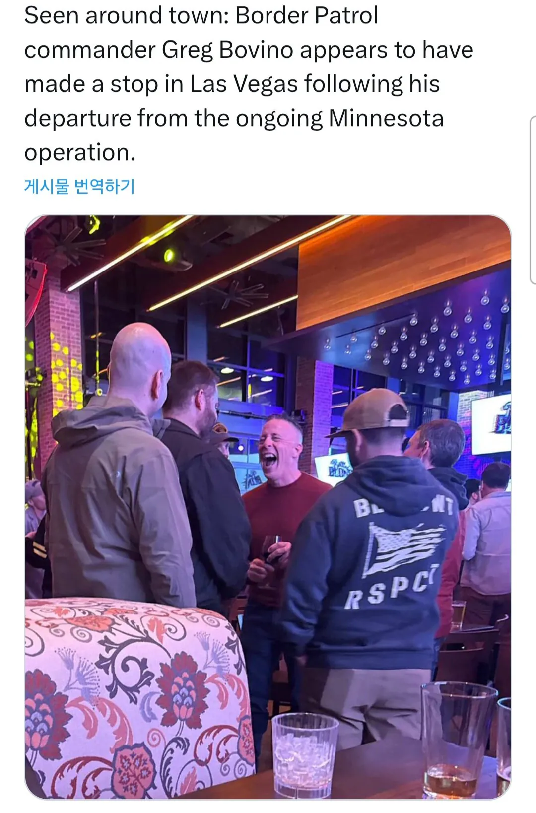 경질된 ICE 사령관 근황 댓글 0 2시간전 작성자 : 드가쥬아 좋아요 팔로우 게시글 보기 라스베가스 바에서 술마시며 쳐웃는 모습 찍힘 알아본 바 주인한테 술마시던 도중 강제로 쫒겨났다고 함 https://lasvegassun.com/news/2026/feb/05/border-patrol-boss-gregory-bovino-tossed-from-las/ 드가쥬아님의 최신 글 02.07 코인으로 100억 잃은 치과의사 02.07 부모가 물려주는 유전적 특성 02.07 다 날렸습니다 .. ㅠ 1억5천 빚더미에 앉았네요 새해에 02.07 싱글벙글 고지능 vs 저지능 02.07 빗썸 코인 사태에 빨간약을 먹어버린 디시인 02.07 코인하는 침팬지 만화 02.07 서울대 교수가 말하는 60초안에 이해 못하면 바보인 문제 02.07 빗썸사건 규모 알려준다 02.07 무선키보드가 폭발했다는 디시인 02.07 요즘 군대에서 상병에서 일병으로 강등된 이유