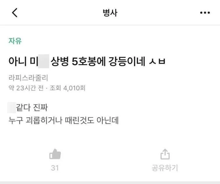 요즘 군대에서 상병에서 일병으로 강등된 이유