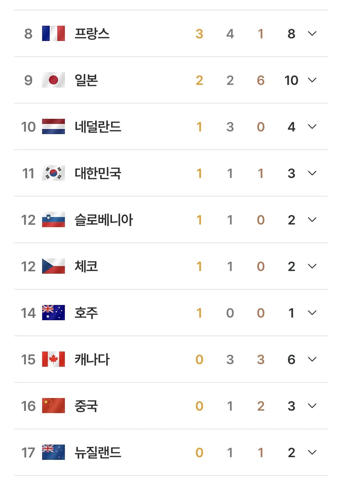 한중일중 혼자 금메달 없는 나라